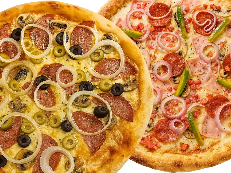 Pizza Española, Pizza Meat Lovers, Pizza Suprema, Pizza Veggie Ricca